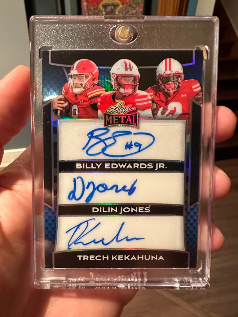 The first several 2025 Leaf releases of the year have been full of Badgers, which is a welcome change. I’ve picked up individual autos of Billy Edwards Jr, Dilin Jones, and Trech Kekahuna, but it was fun to find a triple auto of all three.
