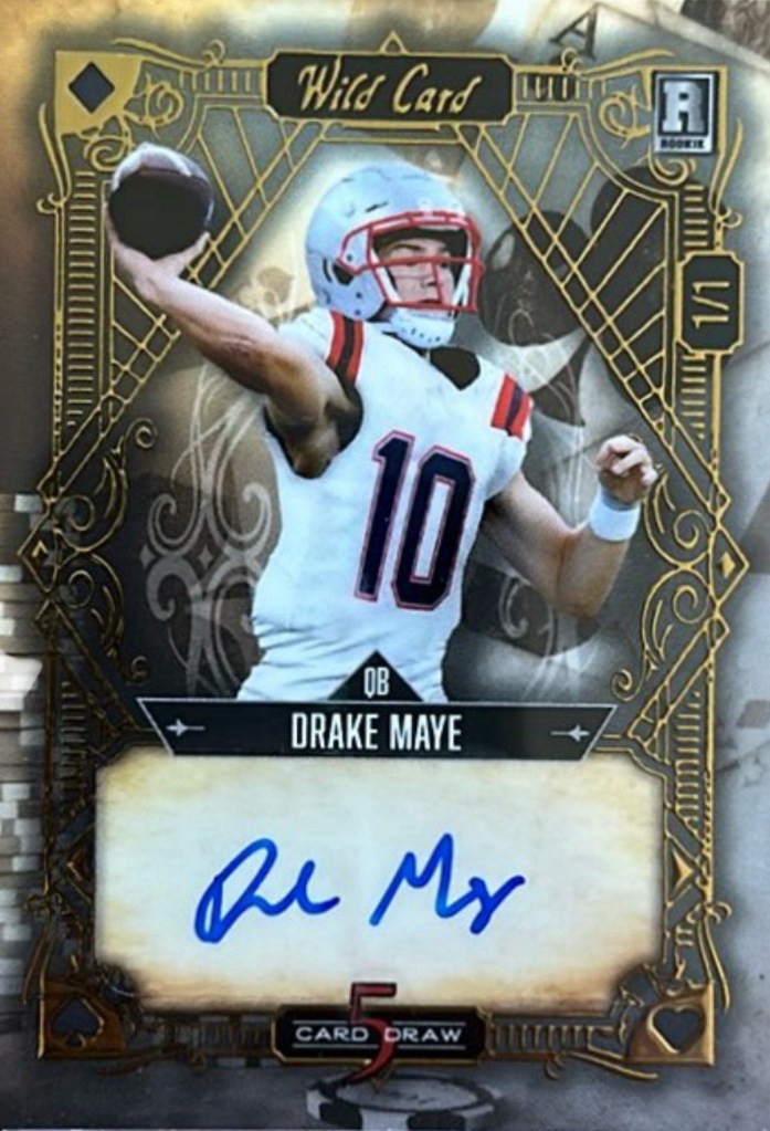 I largely post Packer and Badger cards, but I sometimes make exceptions for excellent young quarterbacks. This year Drake Maye has ascended to elite status, and so I had to make sure I had a rookie auto or two of his in the collection. Since there are no licensed rookie autos of Drake, I went with an on-card, numbered Topps auto. I also have a Wild Card 1/1 auto that, in my opinion, looks just as good as anything that Topps produced.