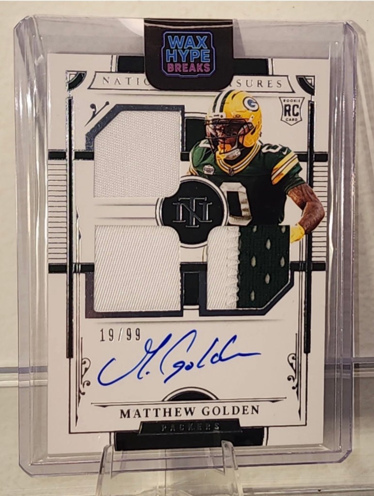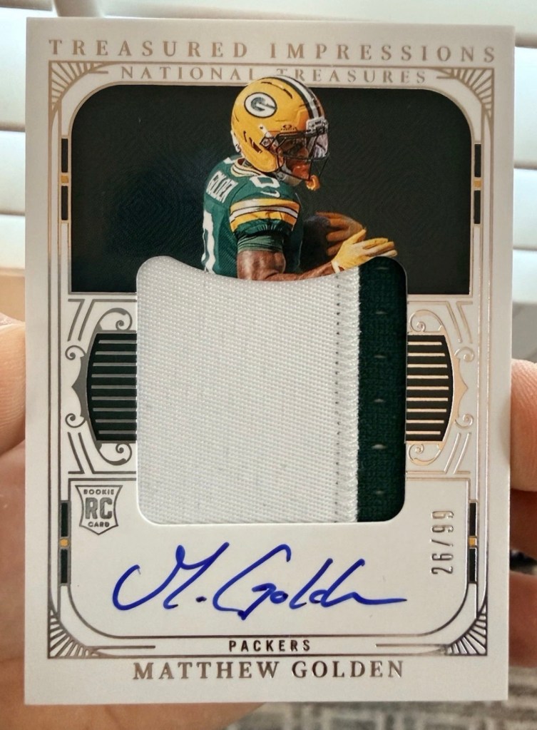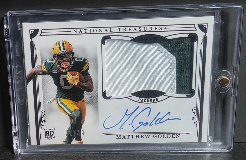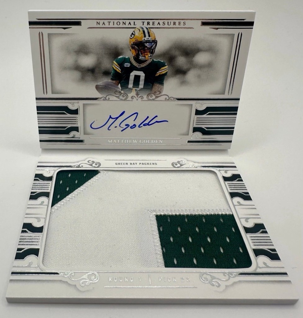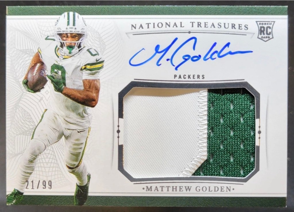 When the Packers finally drafted a receiver in the first round, I knew I had a to build out a huge PC of his cards. Combined with this being the last year of licensed National Treasures, I tried to track down as many of his NT patch autos as possible. The most important was the True RPA, but I also picked up many others to go with it.