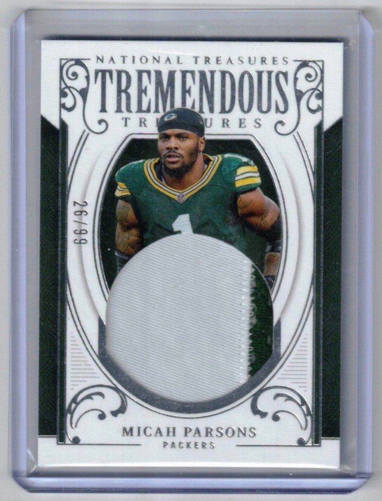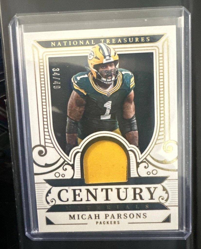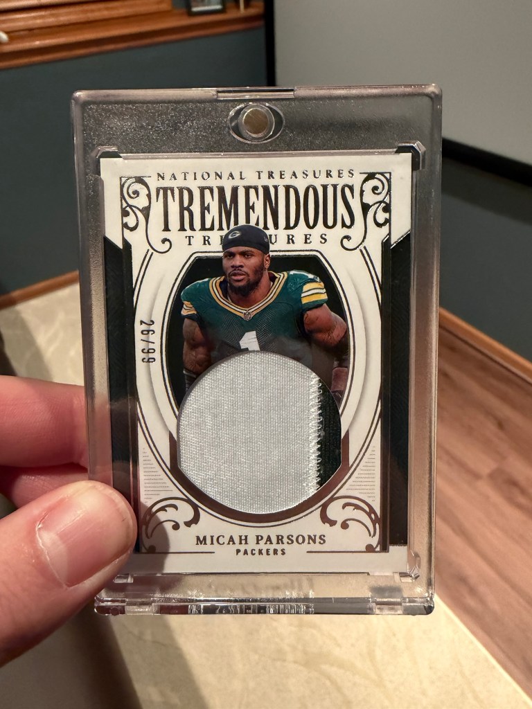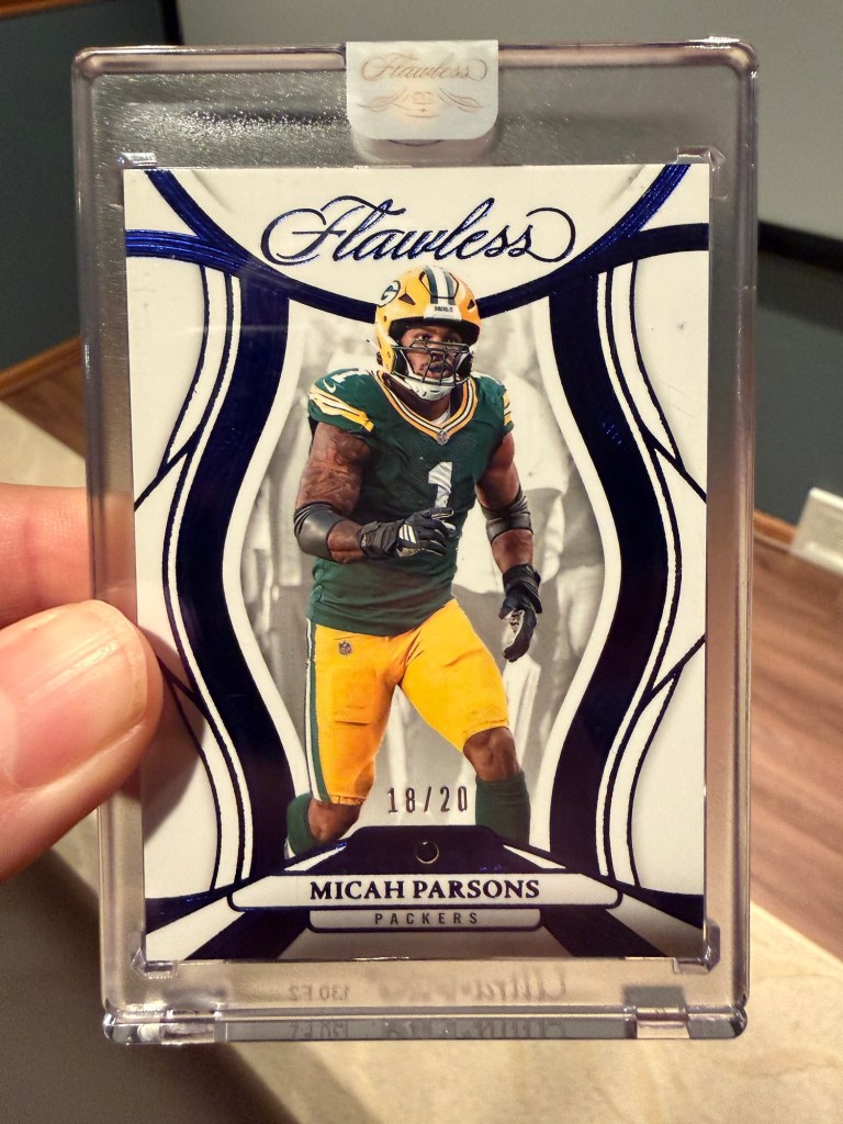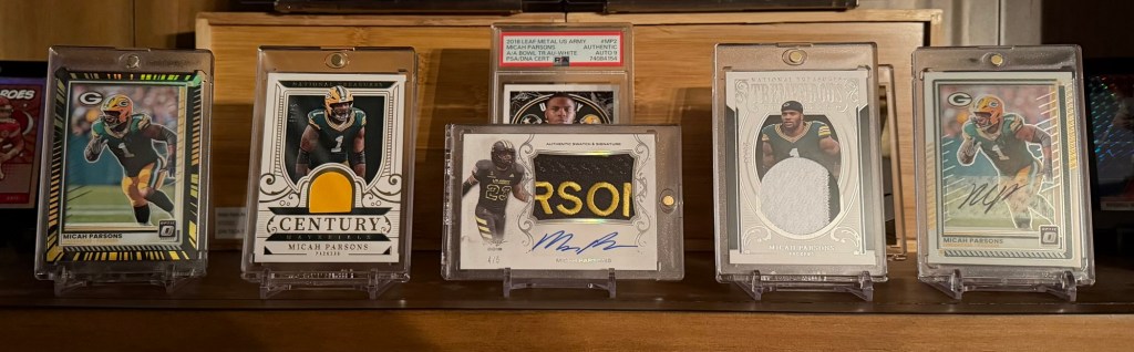 As soon as Micah Parsons signed with the Packers, I started counting down to the release of officially licensed cards in a Packers uniform. Those first came through Donruss Optic, but shortly thereafter National Treasures released, and then Flawless. There are no autos yet, but I’ve accumulated a nice set of Packer uniform patch cards that look great when displayed with some of his other autos in my collection.