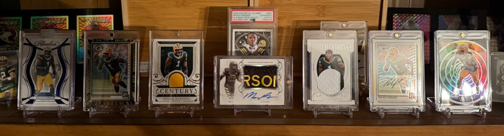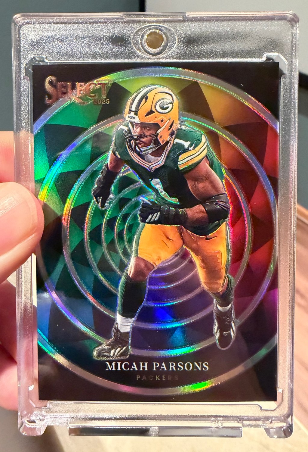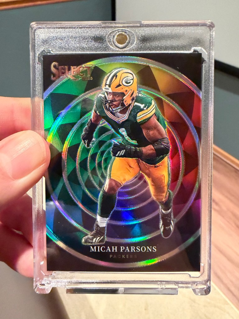 In my quest to accumulate a Parsons PC in Packer uniform, I am chasing case hits in addition to patch cards. The Color Wheel from Select has always played second fiddle to the Color Blast from Prizm, but it’s still a fantastic looking card. The green and gold in the uniform really pops with the other colors on the card!